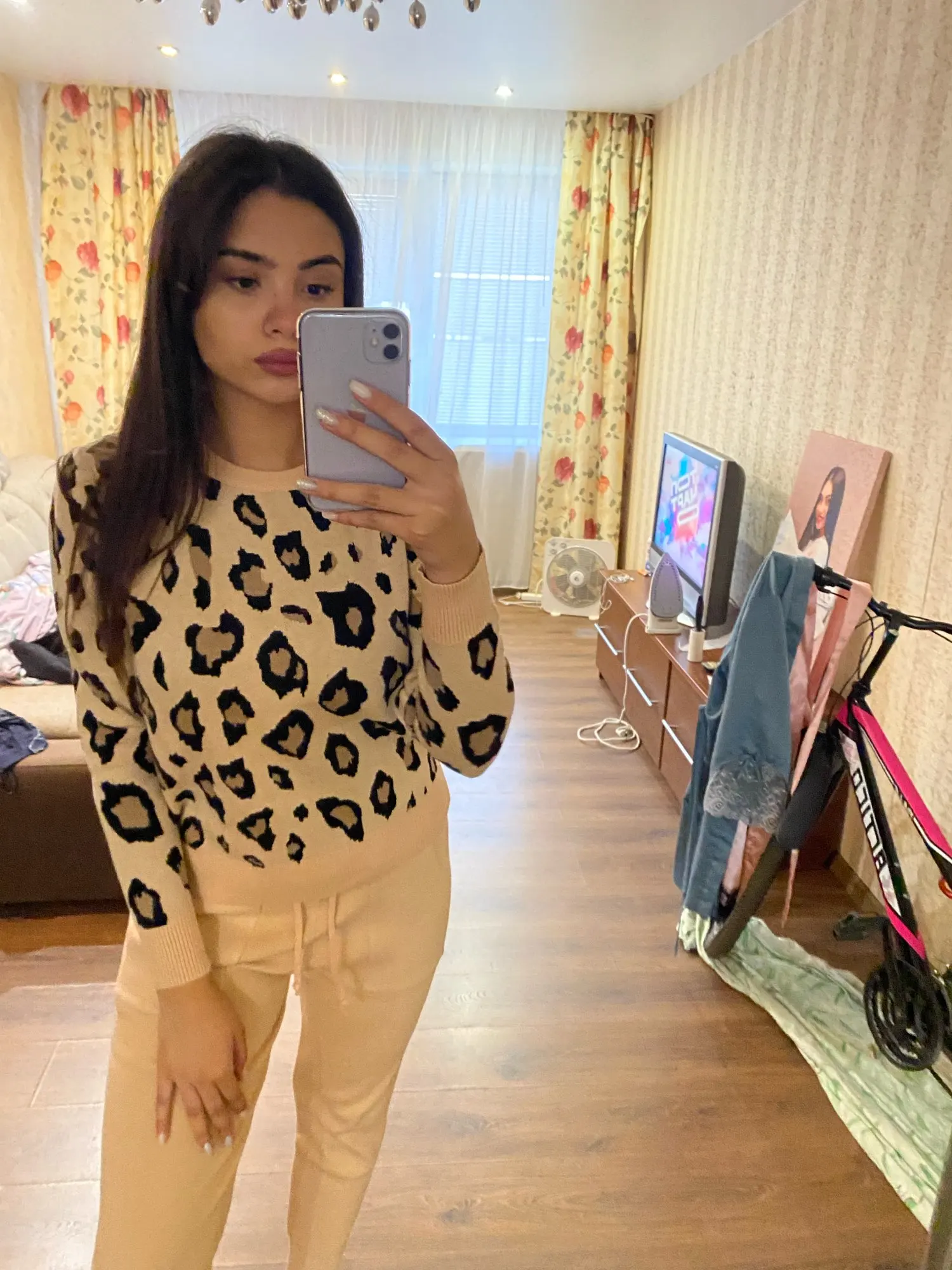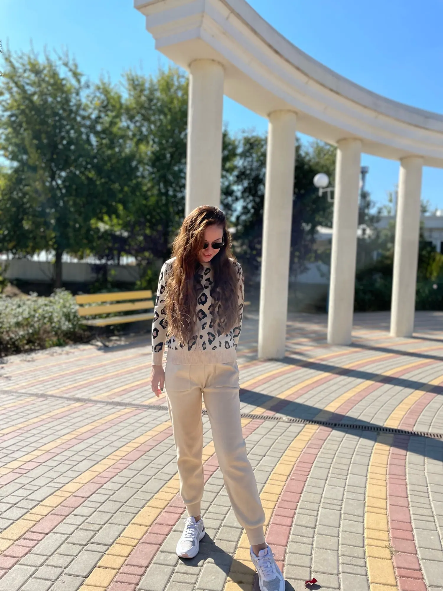 Очень мягкий и классный костюм. Кофта визуально кажется маленькой, но очень хорошо тянется. Низ у меня 46 размер, верх 48. Штаны сели идеально , кофта в обтяг. Смотрится очень круто. На осень-зиму самое то. Очень довольна покупкой. Пришли в Москву примерно за 2 недели