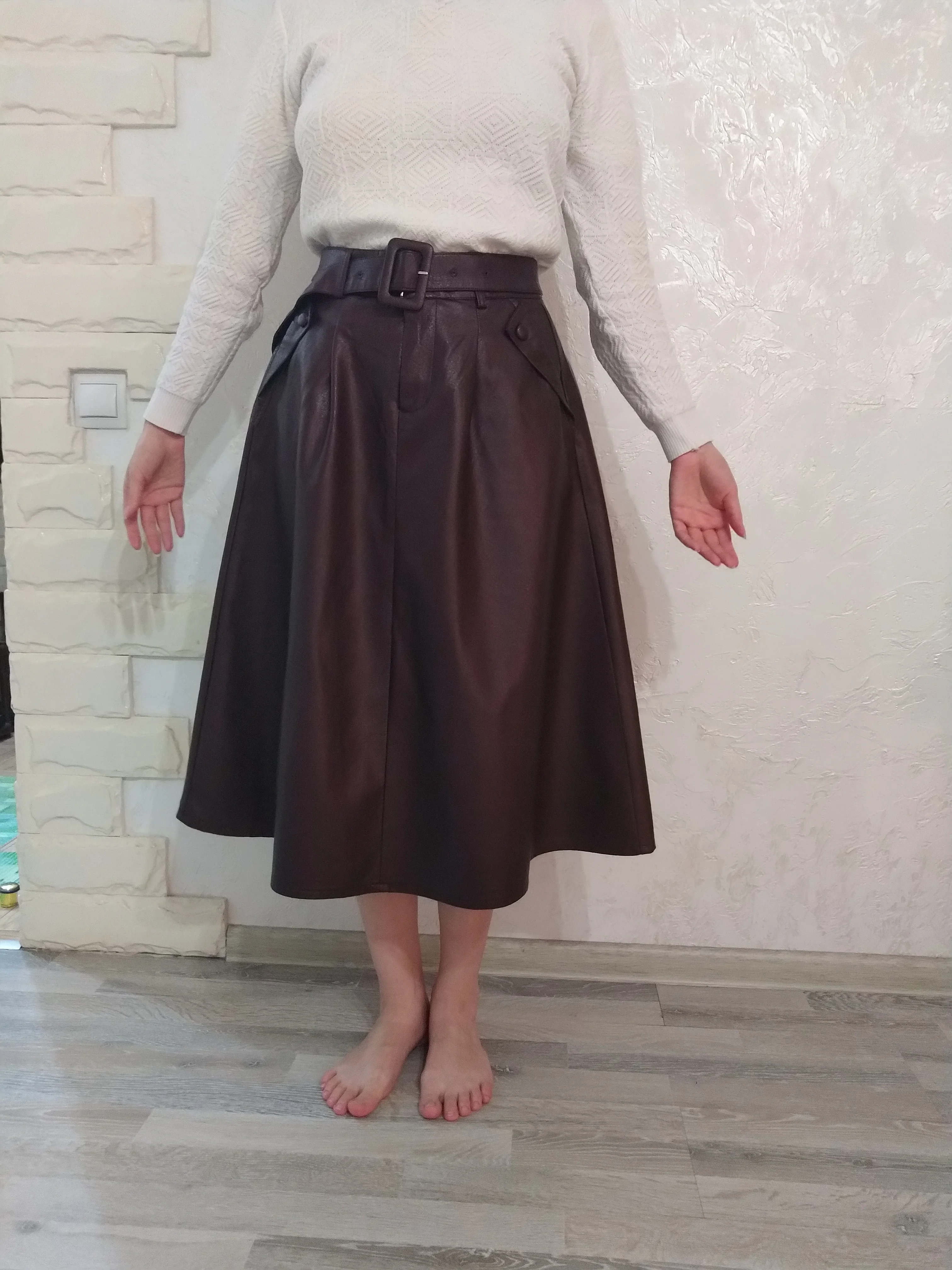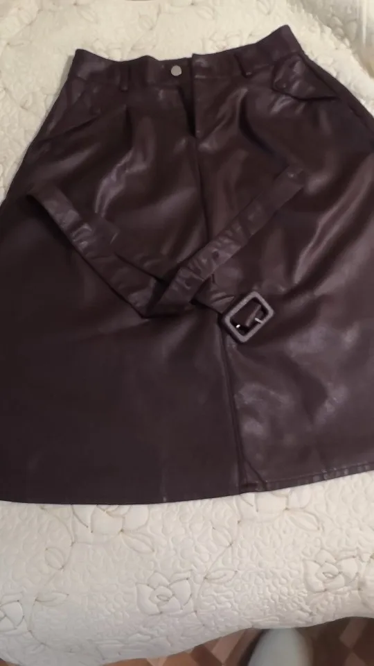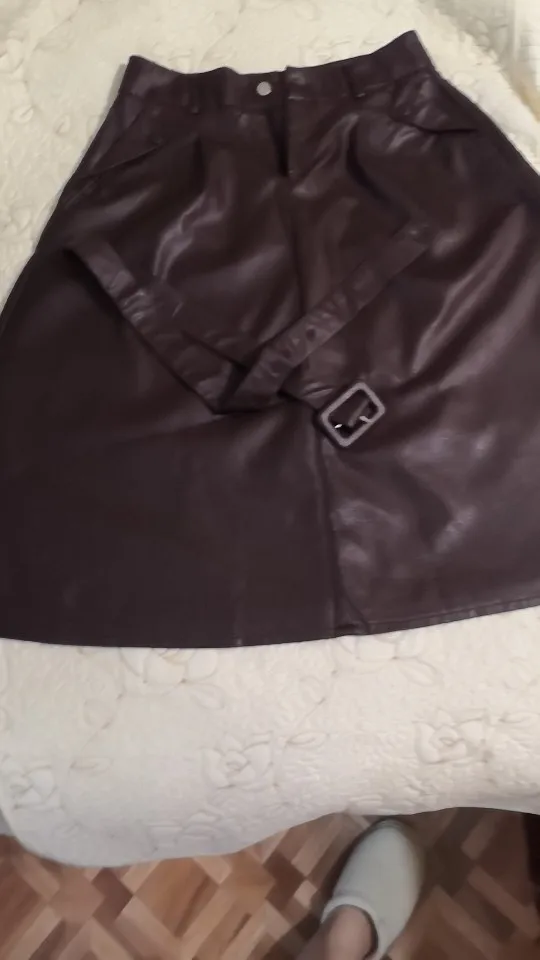 Отличная юбка. Мягкий кожзам без запаха. Очень компактно упаковали, много складок, которые нужно разгладить. Ремешок очень тонкий и ничем не примечателен, стоит заменить на более стильный.