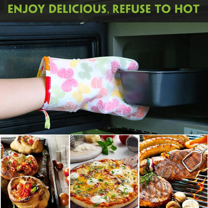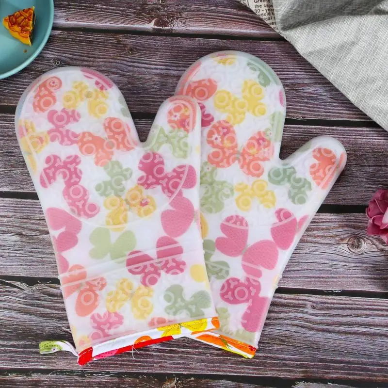 2 шт., термостойкие силиконовые хлопковые перчатки для гриля и барбекю