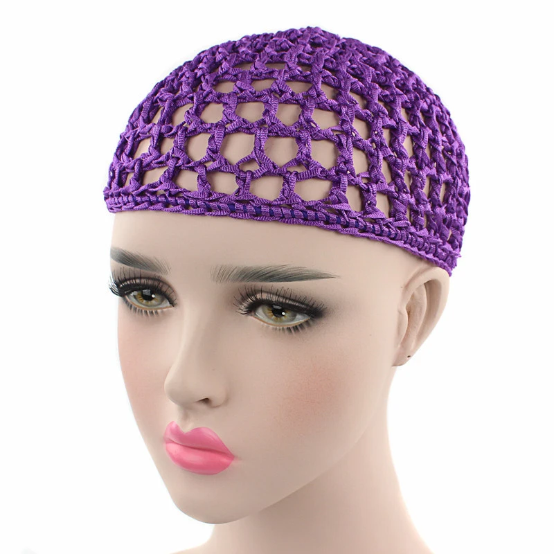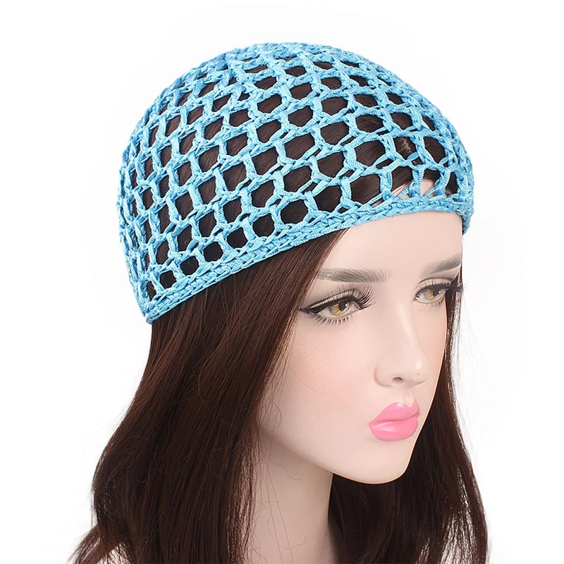 Модная сетка для волос, вязаная крючком шапка, сплошной цвет, снуд, Спящая женская ночная накидка, тюрбан, шапка, шапочка, аксессуары для волос шляпы