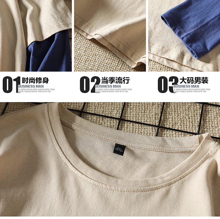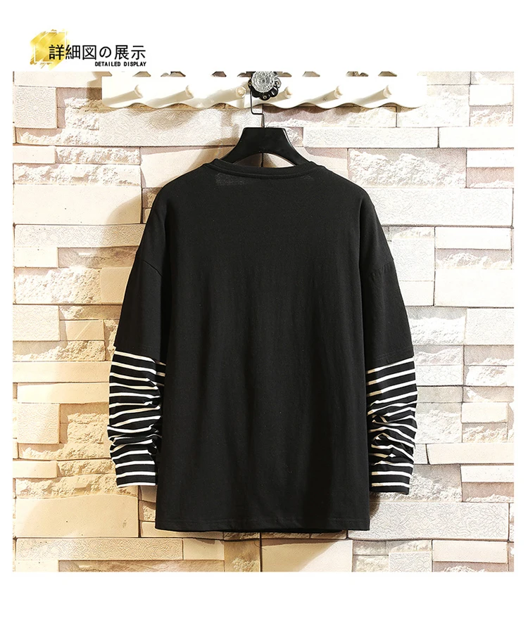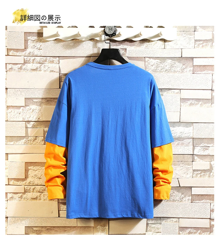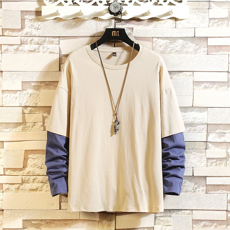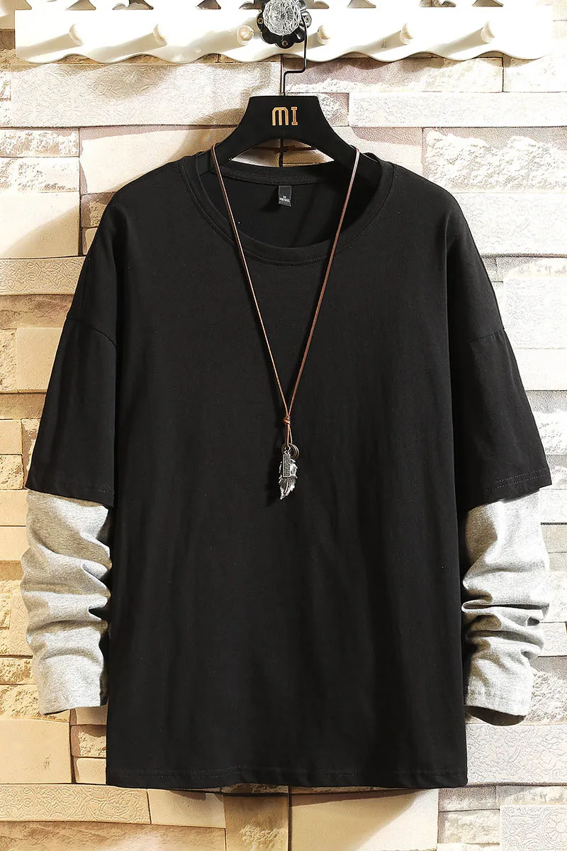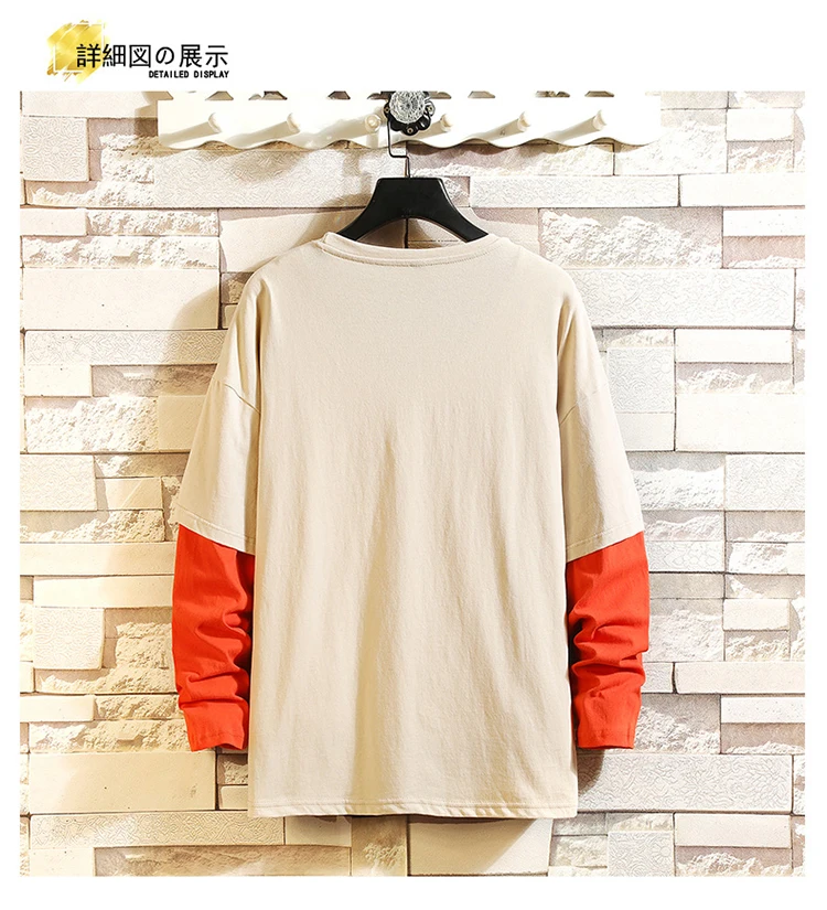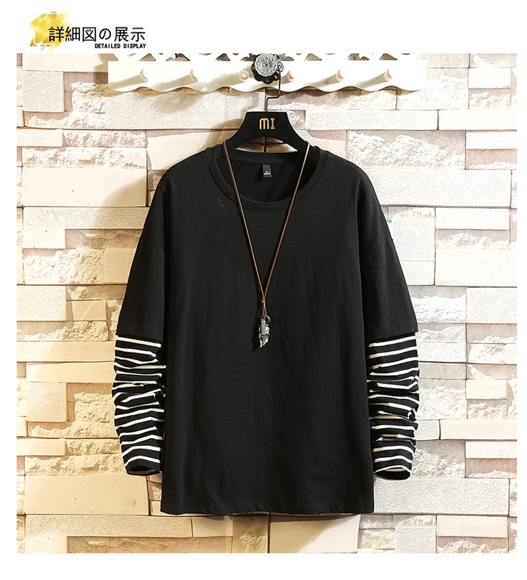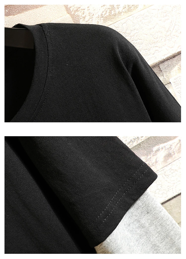 Футболка мужская в стиле оверсайз, модная тенниска из двух предметов, с длинным рукавом, с круглым вырезом, повседневная майка, осень 2020