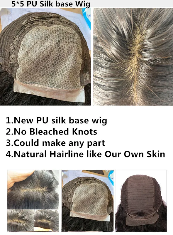 Натуральный цвет короткий Боб прямые 5*5 PU парик на шелковой основ...