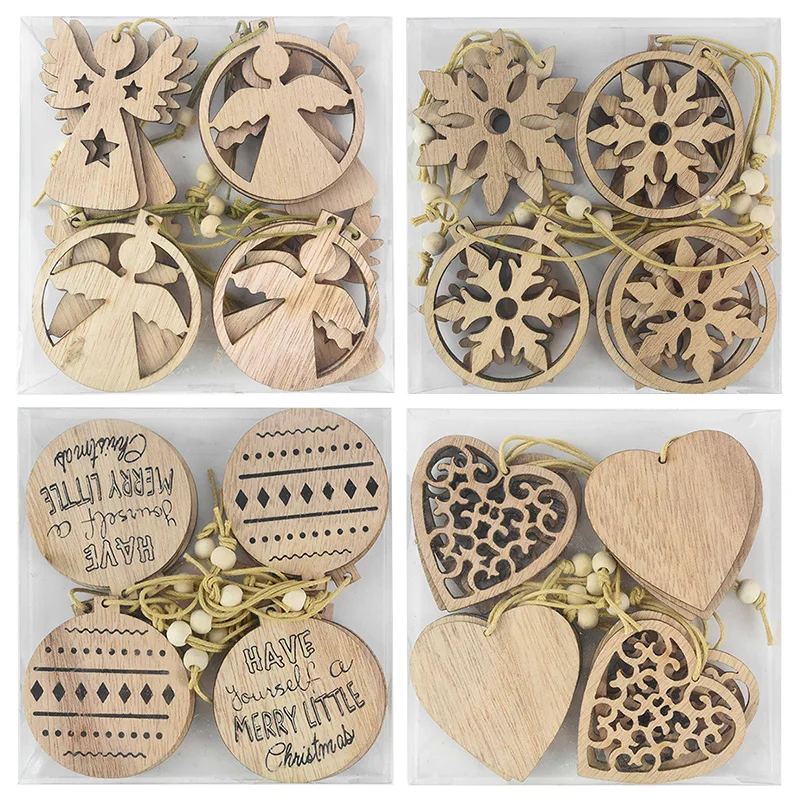 12 шт.лот подвесные украшения для рождественской елки, дерево, деревянное ремесло, украшение для елки, лось, звезда, ангел, колокольчики, украшение, Декор