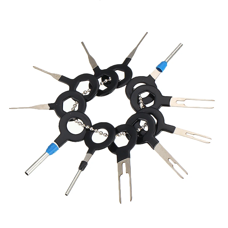 Особенности:-Используется для разборки автомобильных клемм проводов без повреждений.-Диаметр одного штифта: 0,8-2,0 мм/один штифт с наконечником-Диаметр двух контактов: 2-6 мм/внутренний 3 мм с внешним 8 мм/двойной контакт с одной круглой головкой-Внутренний диаметр полого штифта: 2-6,2 мм-Применимость: универсальный, подходит для всех внедорожников, пикаповПримечание:1. Возможны небольшие погрешности из-за ручного измерения. Пожалуйста, убедитесь, что вы не против, прежде чем сделать заказ.2. Цвет может отличаться от цвета на дисплее. Надеемся на понимание.Посылка18/11 шт. инструмент для снятия клемм проводов