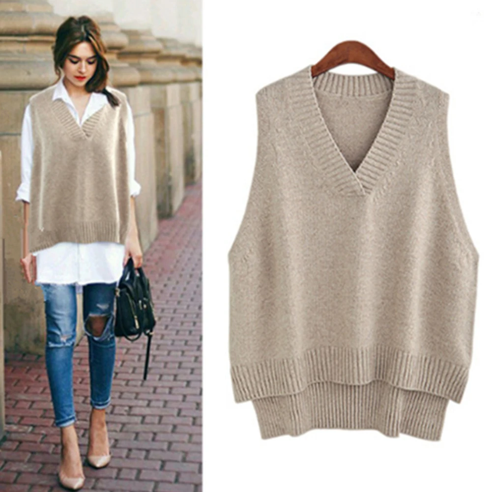 Женский свитер, топы на бретелях, весна-осень, жилет, майка без рукавов, v-образный вырез, вязаный свитер, жилеты, пуловер, джемпер