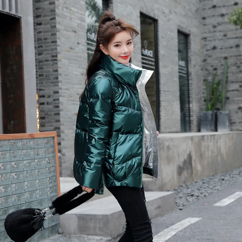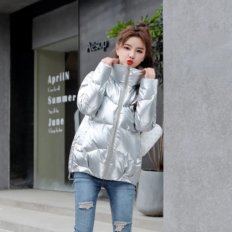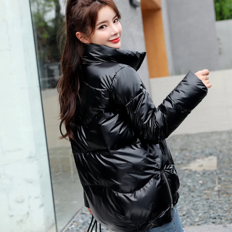 Женская куртка с хлопковой подкладкой, блестящая куртка с воротником-стойкой, теплая Повседневная зимняя парка, 2021