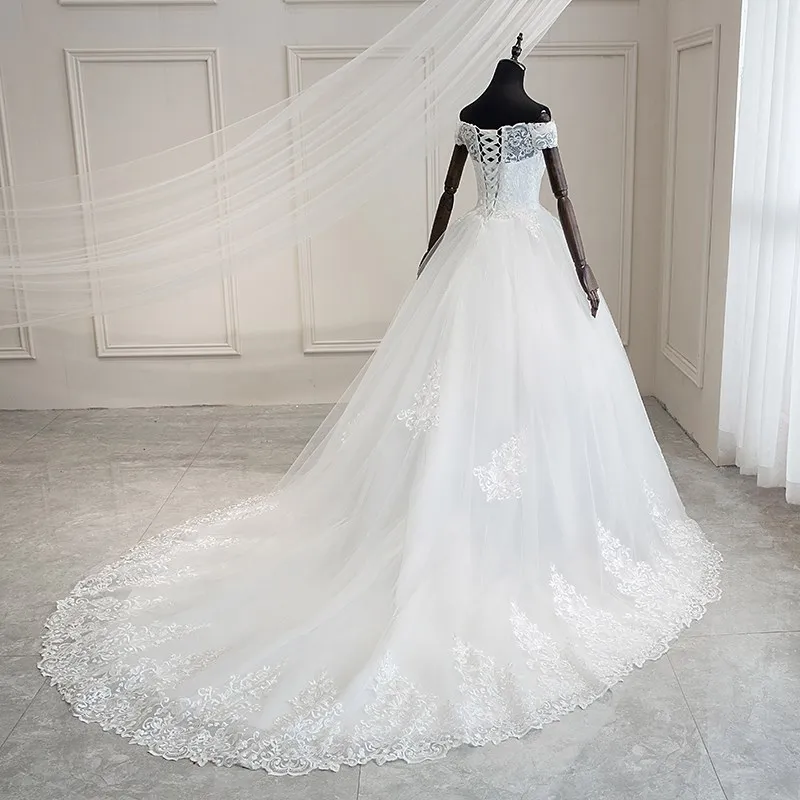 Женское свадебное платье со шлейфом, прозрачное фатиновое платье с открытыми плечами, модель 6 размера, 2022