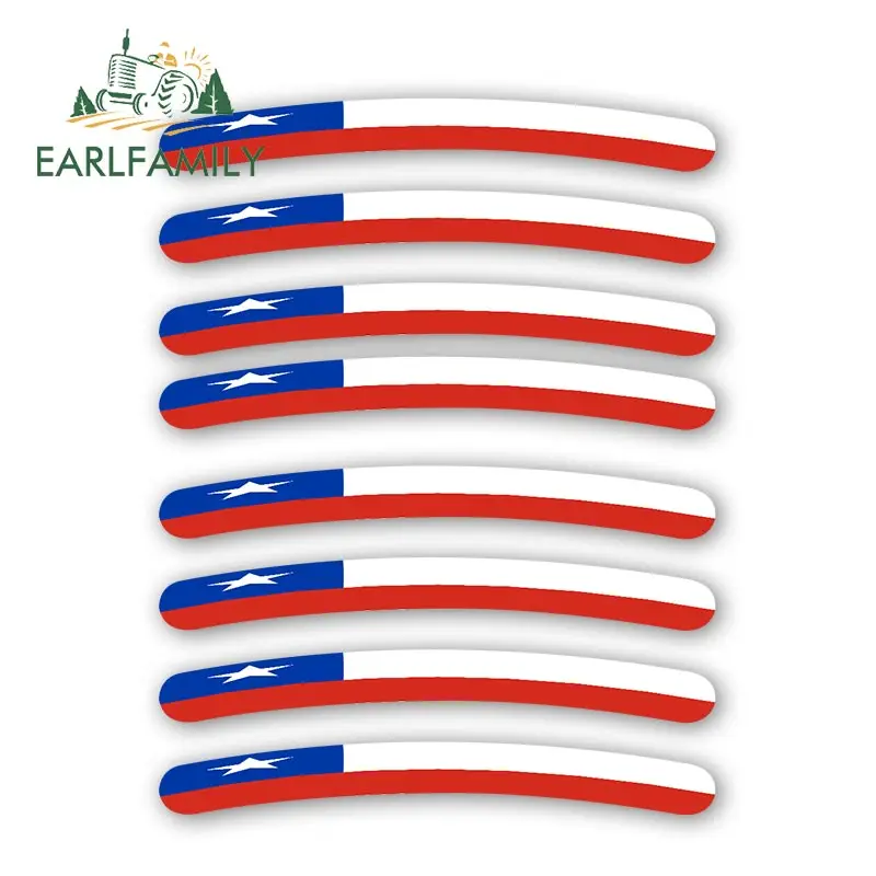 EARLFAMILY 13 см x 1,3 см 8 шт., флаг Чили, наклейки на колесо мотоцикла, велосипеда, автомобильные водонепроницаемые наклейки, набор полос, украшение для автомобиля