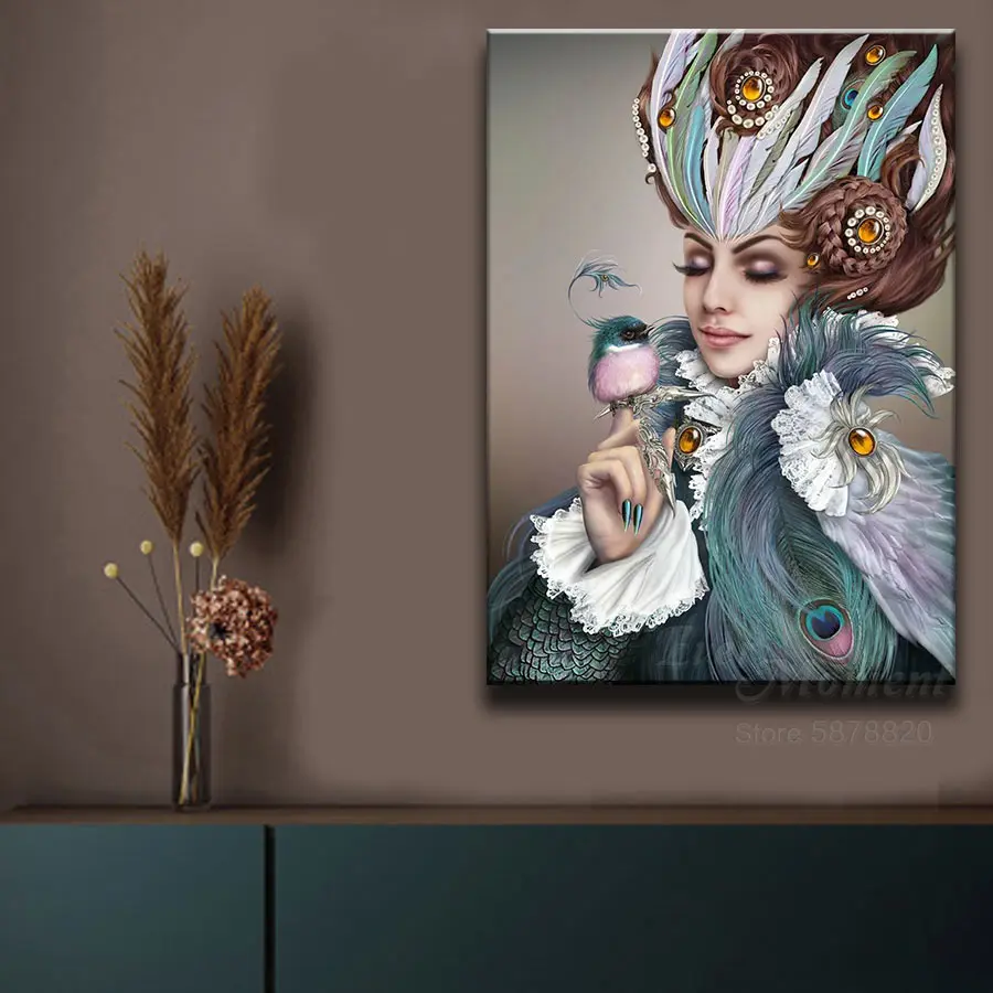 Алмазная 5L383 картина на стену с изображением девушки с перьями