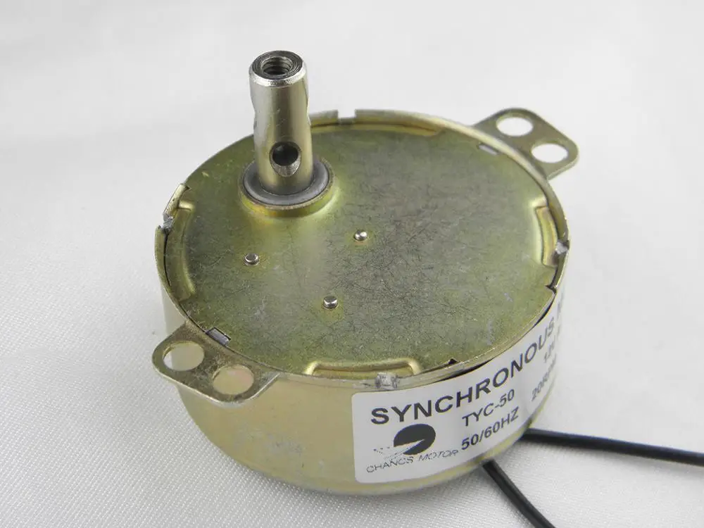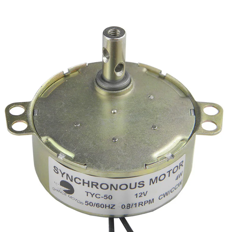 * Модель: TYC-50;Диаметр вала: 7 мм;Длина вала: 16 мм;Направление: CCW/CW (неконтролируемое);Напряжение: 12 В постоянного тока;Скорость: 0,8-1 об/мин;Мощность: 4 Вт;Крутящий момент: ≤ 14 кг * см;Частота: 50/ 60 Гц;