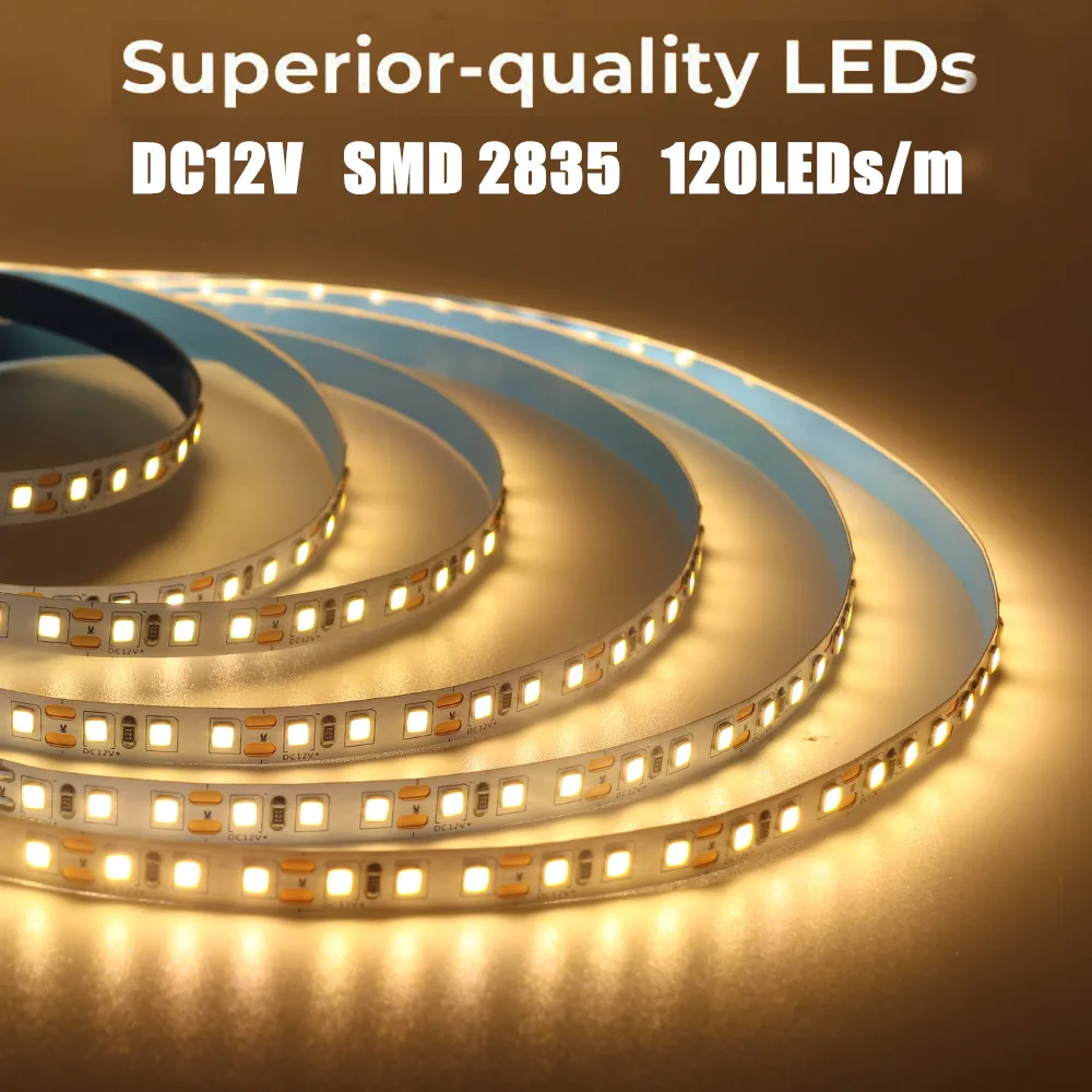 Светодиодная лента, 12 В постоянного тока, сверхъяркая, ширина 8 мм, 2835 светодиодовм, Гибкая полоса освещения, белыйтеплый белыйсинийзеленыйкрасныйрозовыйжелтый, 5 метров