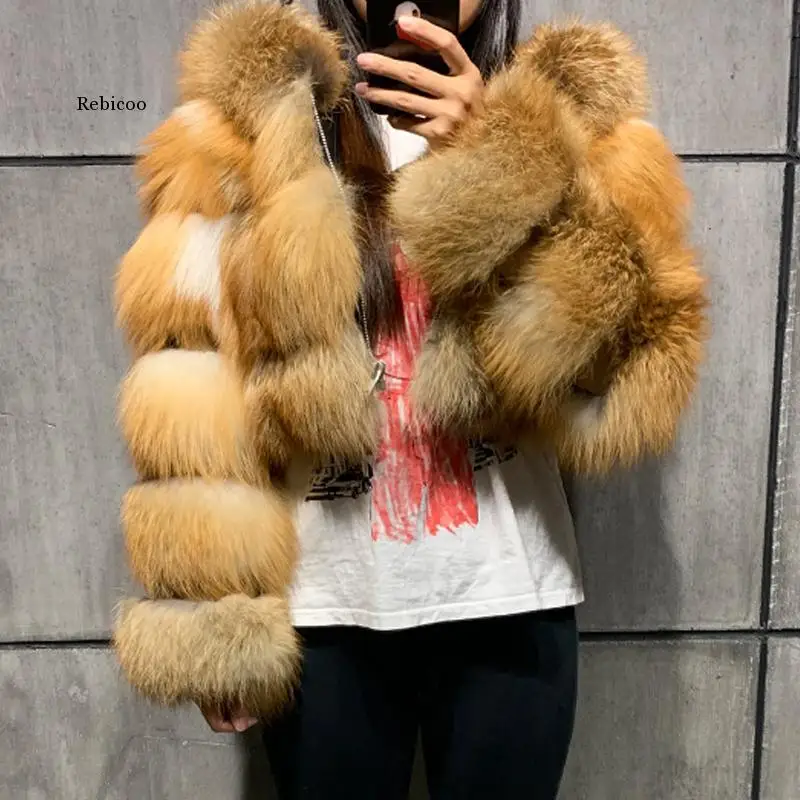 Модная женская Экологичная шуба из красного лисьего меха с капюшоном, толстая теплая куртка из лисьего меха, короткая зимняя женская шуба размера плюс