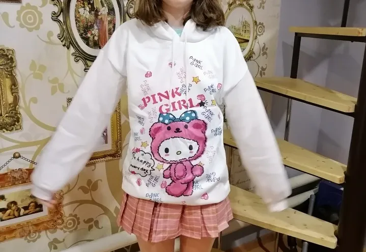 Толстовка пришла в указанный срок, всё соответствует описанию, выглядет, как на фото, рисунок не наклейка, а печать... НО... толстовки для ХУДЕНЬКИХ подростков. Я выбрала размер XXL, но в объёме она все равно не оверсайз и капюшон маленький, просто, как дикоративный.