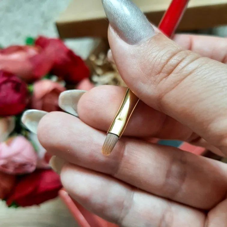 Кисточка закругленной формы со скошенным краем и тонким кончиком. #Волокна хорошо скреплены между собой и не пушатся при использовании. Кисть хорошо сохраняет форму и равномерно распределяет цвет. Доставка в РБ - почти месяц. Трек отслеживался в статусе заказа на Aliexpress.