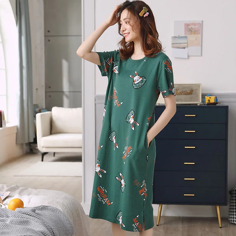 Nornsстильная ночная рубашка для женщин; Сезон лето; Корейская Трикотажная хлопковая домашняя одежда; Милая Пижама с героями мультфильмов; Свободная одежда; Большие размеры