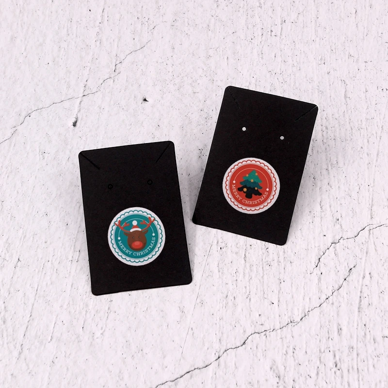 50 шт. 6x9 см, крафтовые серьги-гвоздики, карты, черные серьги, ожерелье, вешалка для упаковки, карта с рождественскими наклейками, оптовая продажа