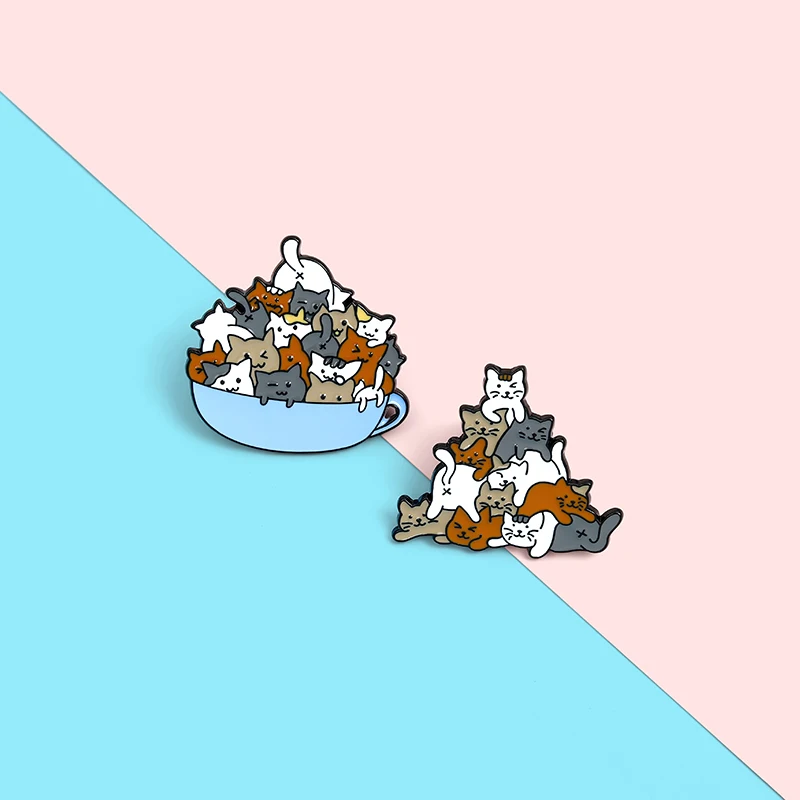 Эмалированные заколки для лацканов с милыми кошками кофе безопасное...