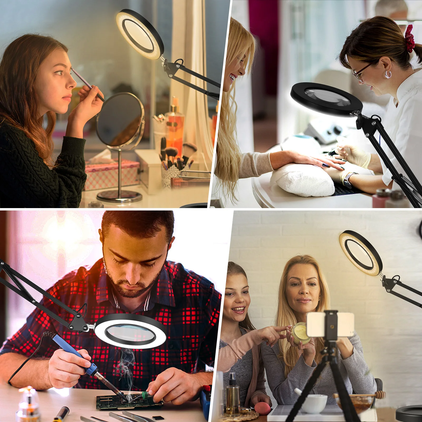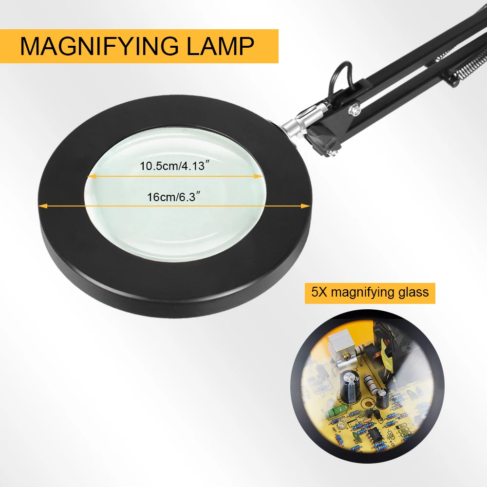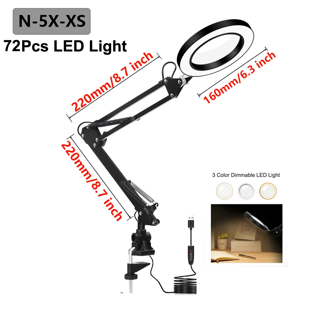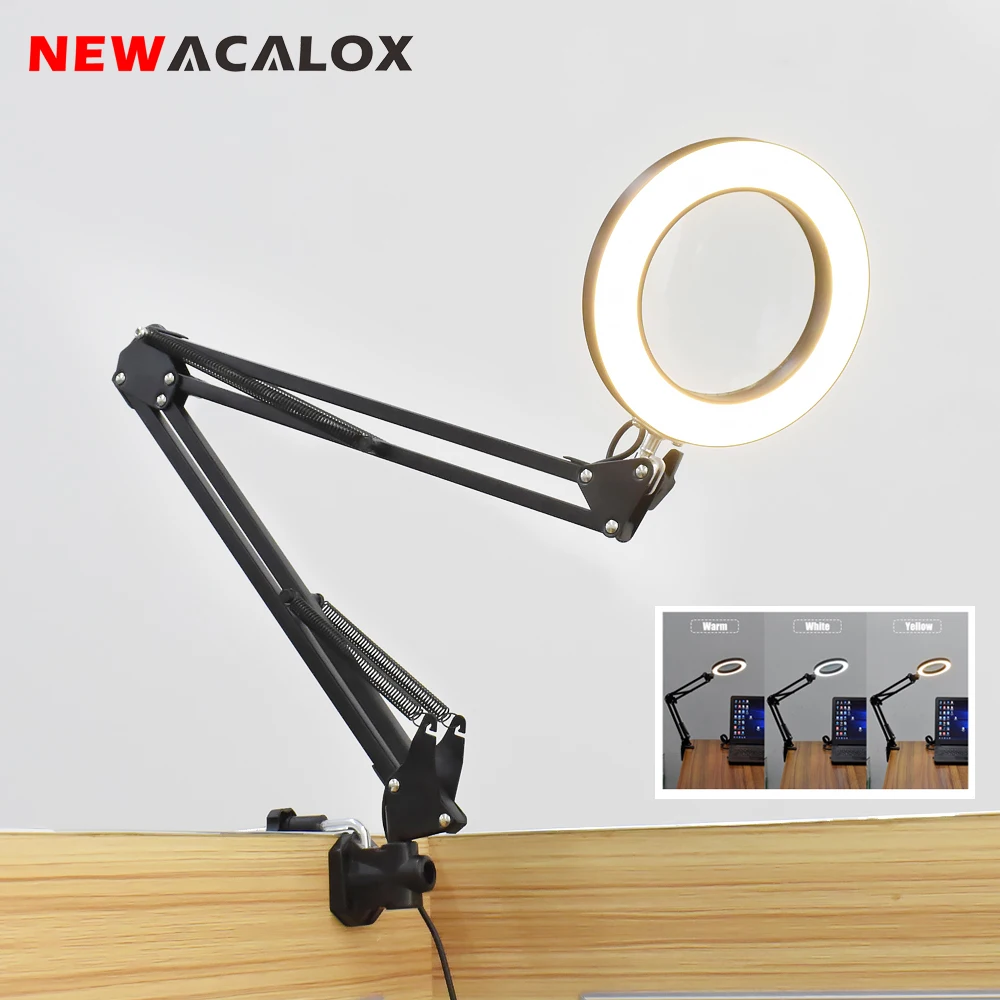 Увеличительное стекло NEWACALOX, настольная лампа с зажимом 5X, 72 светодиосветодиодный SMD, 3 режима работы, для чтения, ремонта