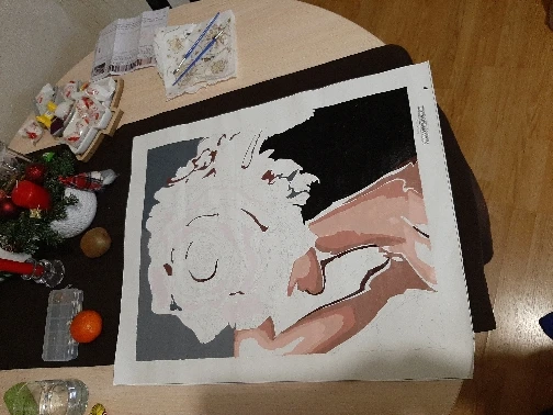 Шикарная картина) красочки укрывистые, перерывают с первого слоя все цифры и линии. Сначала переживала, что краски может не хватить, но изготовителем все предусмотрено. Краска осталась в избытке. Спасибо продавцу за мои скрашенные зимние вечера