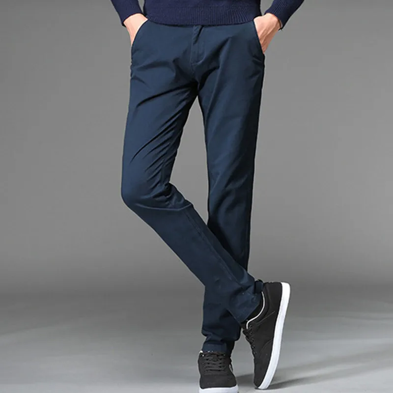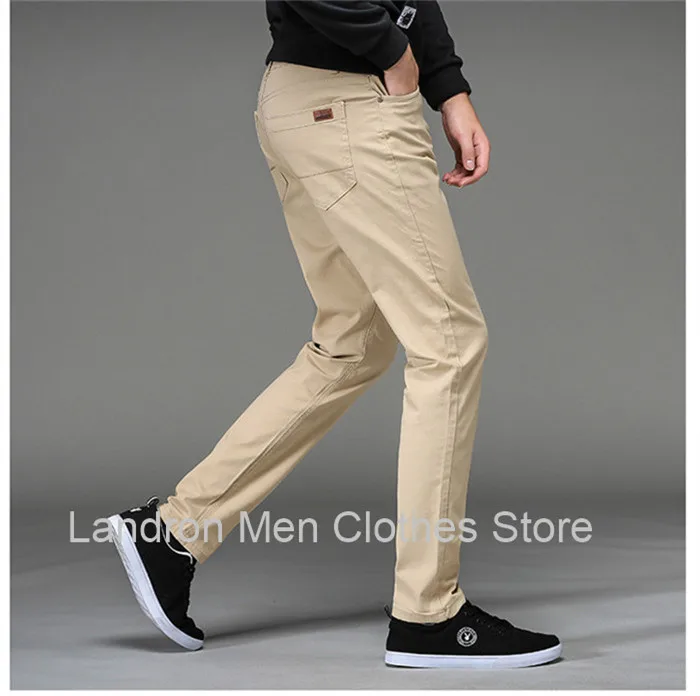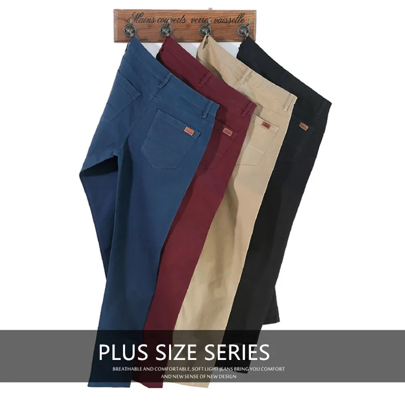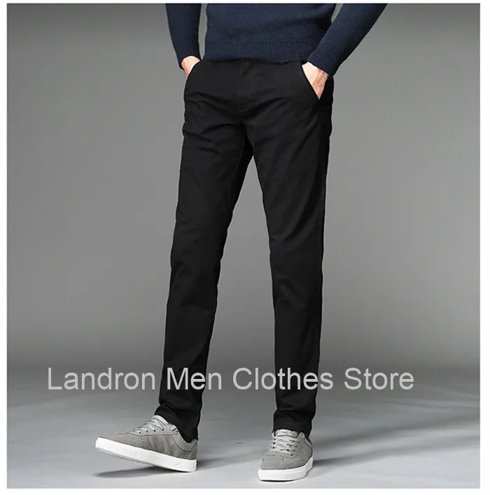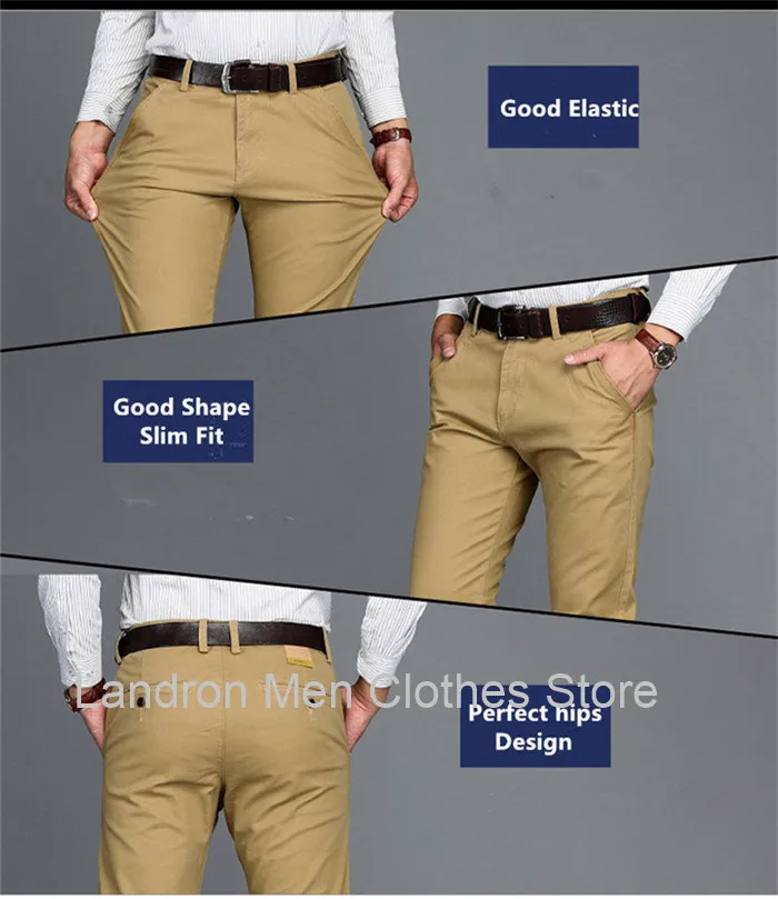 Мужские деловые брюки из хлопка большого размера, мужские прямые тянущиеся облегающие брюки большого размера, черные, хаки, длинные 42, 44, 46, эластичные мужские брюки