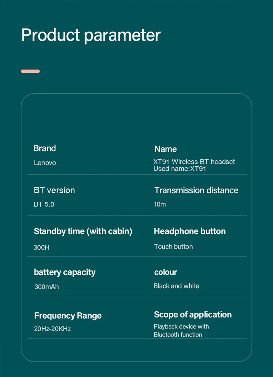 Беспроводные Bluetooth-наушники Lenovo XT91 TWS BT5.0 с управлением ии, Спортивная стереогарнитура с шумоподавлением, наушники с микрофоном
