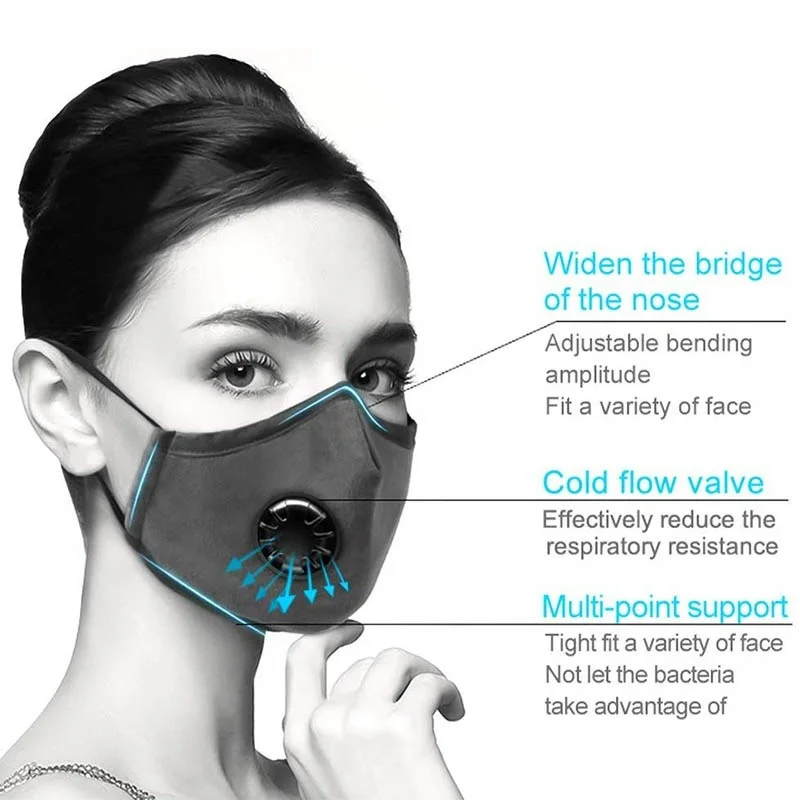 4 шт. многоразовая хлопковая маска для лица с дыхательным клапаном,...