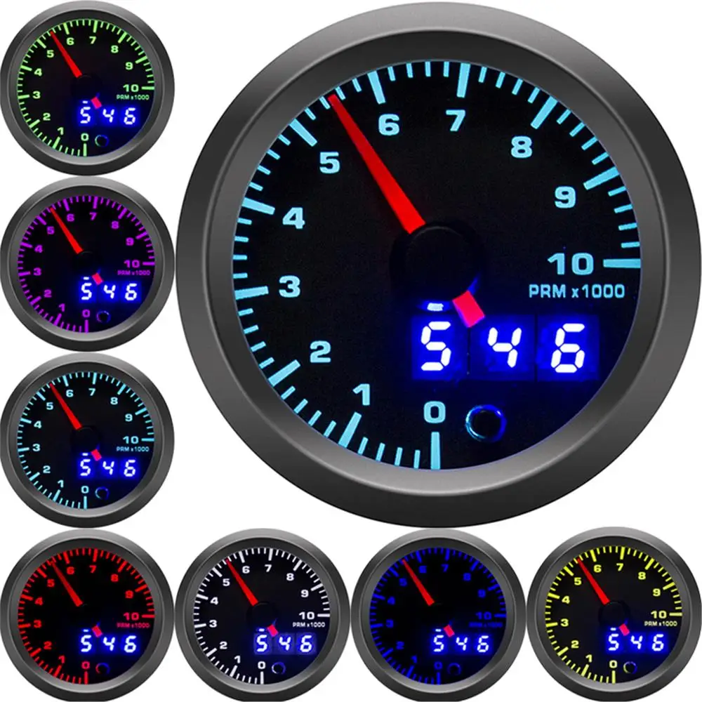 Автомобильный Тахометр 2 дюйма, 52 мм, измеритель оборотов в минуту, автомобильный указатель, дисплей 0 10 1000, гоночный Профессиональный манометр, подходит для автомобиля 12 В, 7 цветов