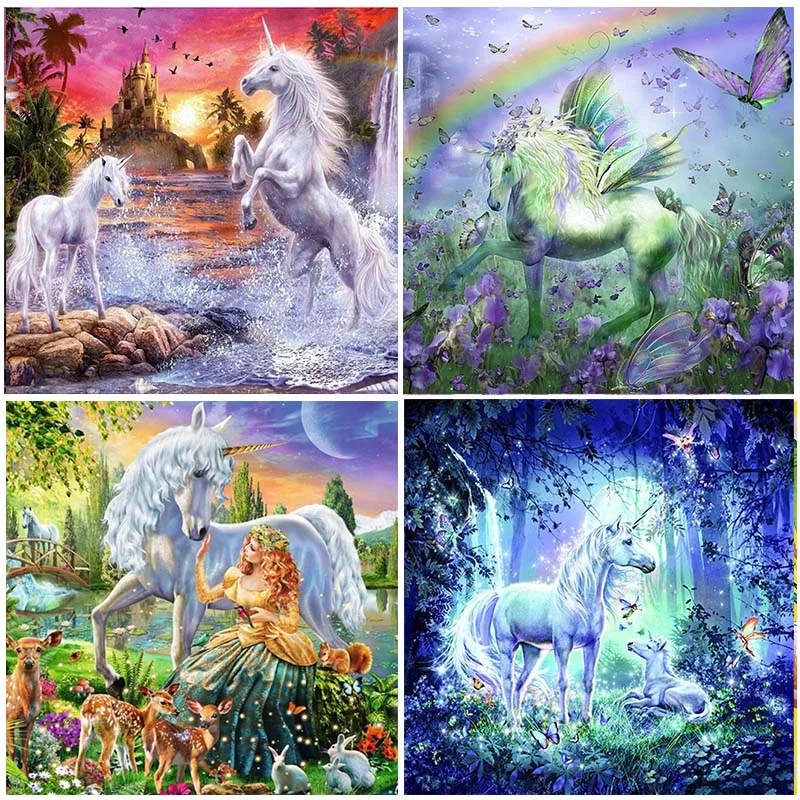 Алмазная вышивка 5D "Единорог", картина из круглых страз, с животными из стразов дюйма, квадратная вышивка, мультипликационный рисунок