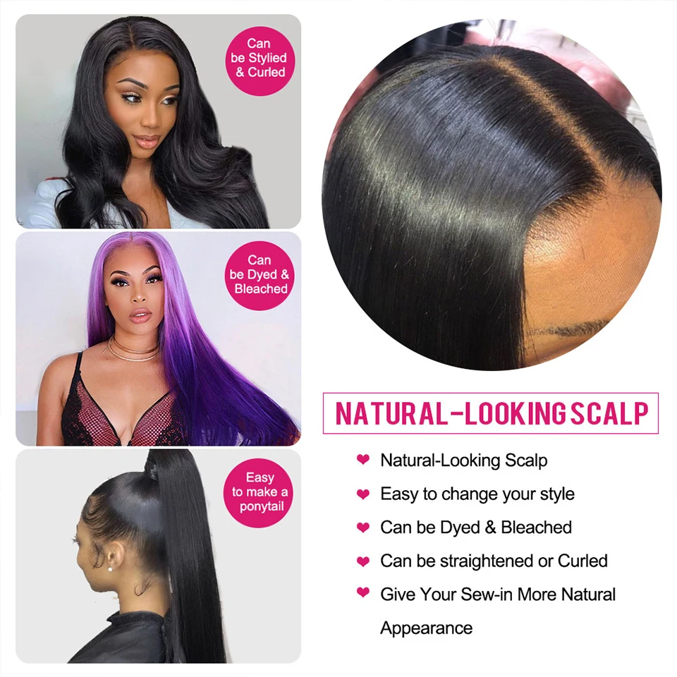 Парик из натуральных прямых волос Ishow 250, 30, 32, 34 дюйма, 13x4, 13x6