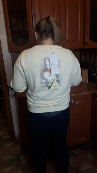о, я его очень люблю. отличный оттенок для слегка смуглой кожи, прямо светится лицо от него. рисунок в верхней части спины достаточно крупный. нанесен краской, прекрасно выдержал стирку и глажку. внутри петлевая изнанка. свитшот достаточно плотный. сел умеренным оверсайз на рост 162, вес 52, параметры 95-62-90. рукава длинные, полные. вещи выше всяческих похвал.