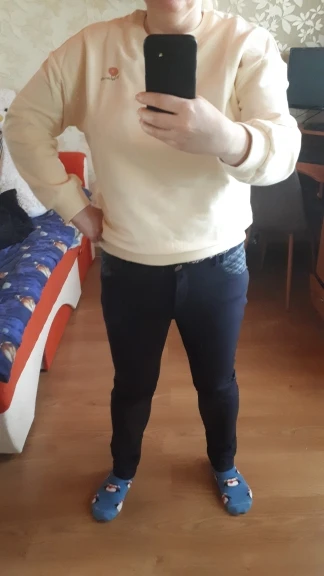 Отличная хлопковая толстовка. Размер m на 84-67-90 смотрится оверсайз, рост 154
