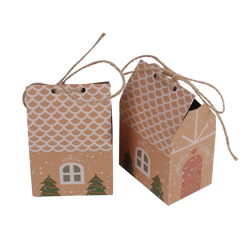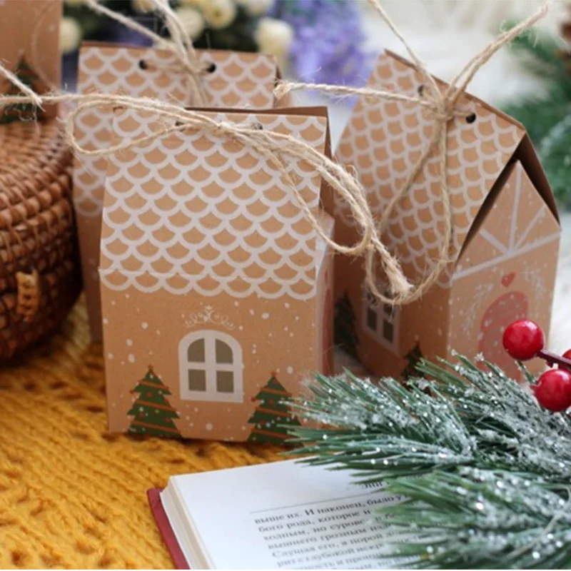 Рождественские подарочные коробки из крафтовой бумаги, в форме домика с веревками, коробка для конфет Упаковка подарочные пакеты, для рождества, Детская Новогодняя Подарочная коробка, 510 шт.