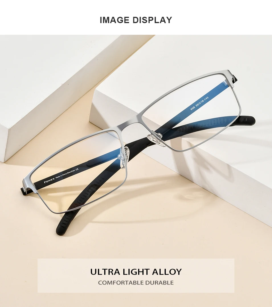 FONEX Мужские оправы из сплава, квадратные оптические очки для близ...