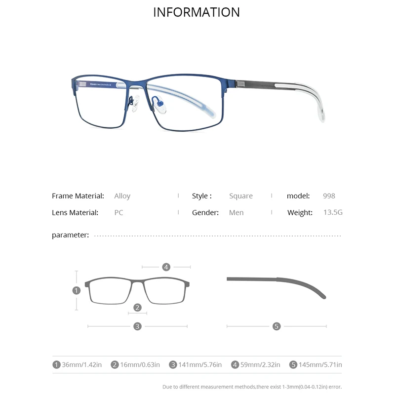 FONEX Мужские и женские Безвинтовые очки по рецепту от близорукости