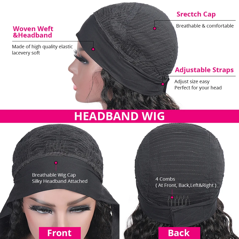 Wigs Length8-26 inch Human Hair Wigs With Headband