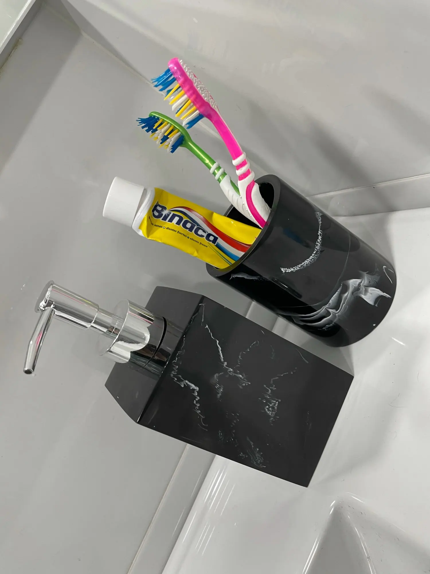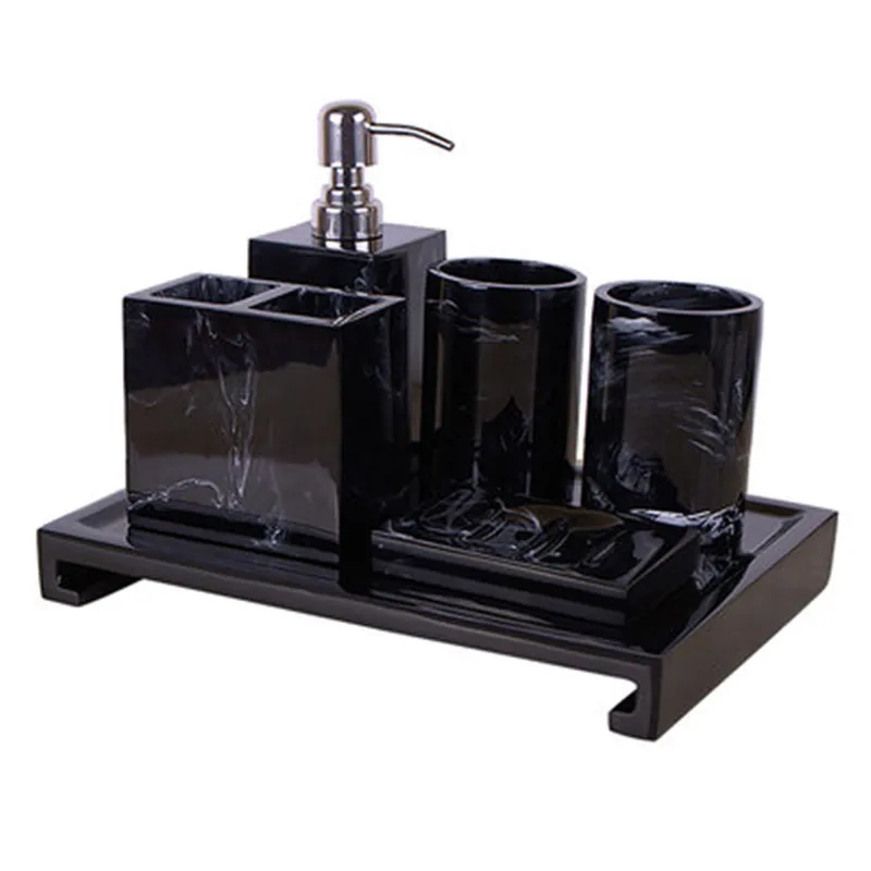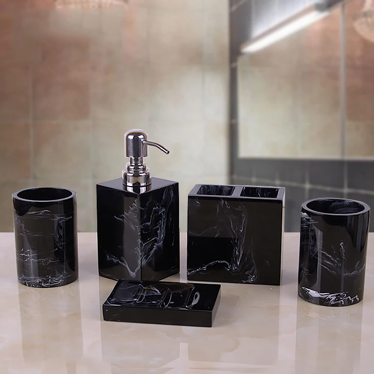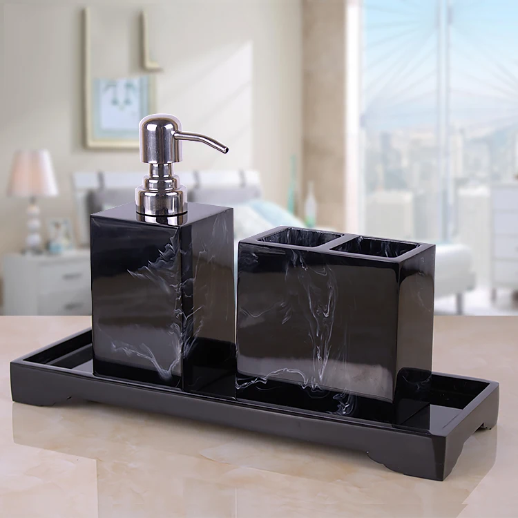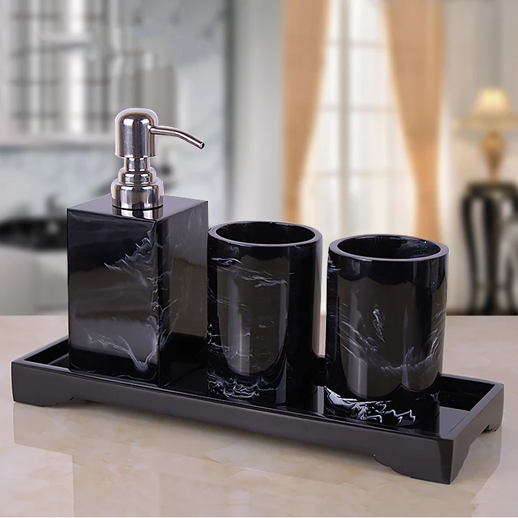 Держатель для зубных щеток, черный мрамор, поднос с узором, набор для ванной из полимера, диспенсер для мыла, набор аксессуаров для ванной, домашний декор