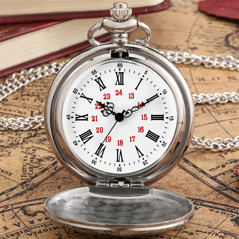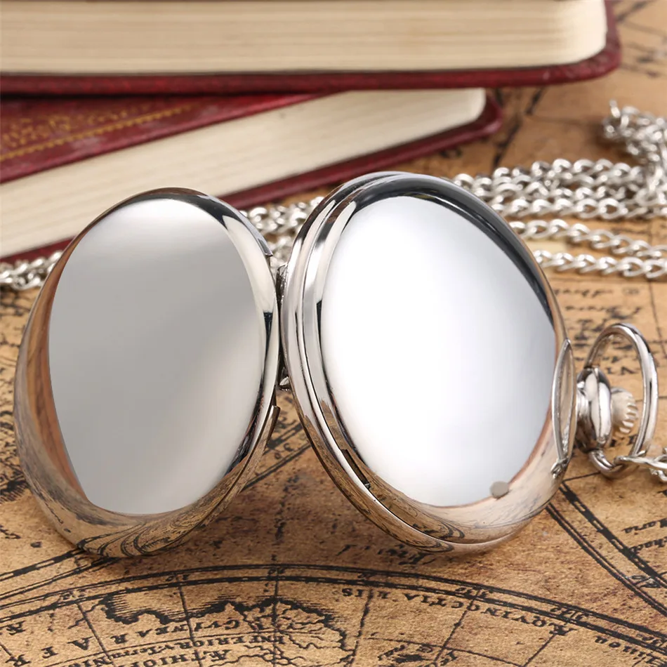 Мужские карманные часы с гладким серебряным покрытием, элегантный б...
