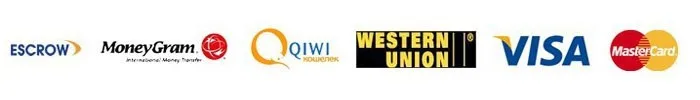 Escrow является нашим предпочтительным способом оплаты, мы также принимаем различные платежи, как показано ниже: