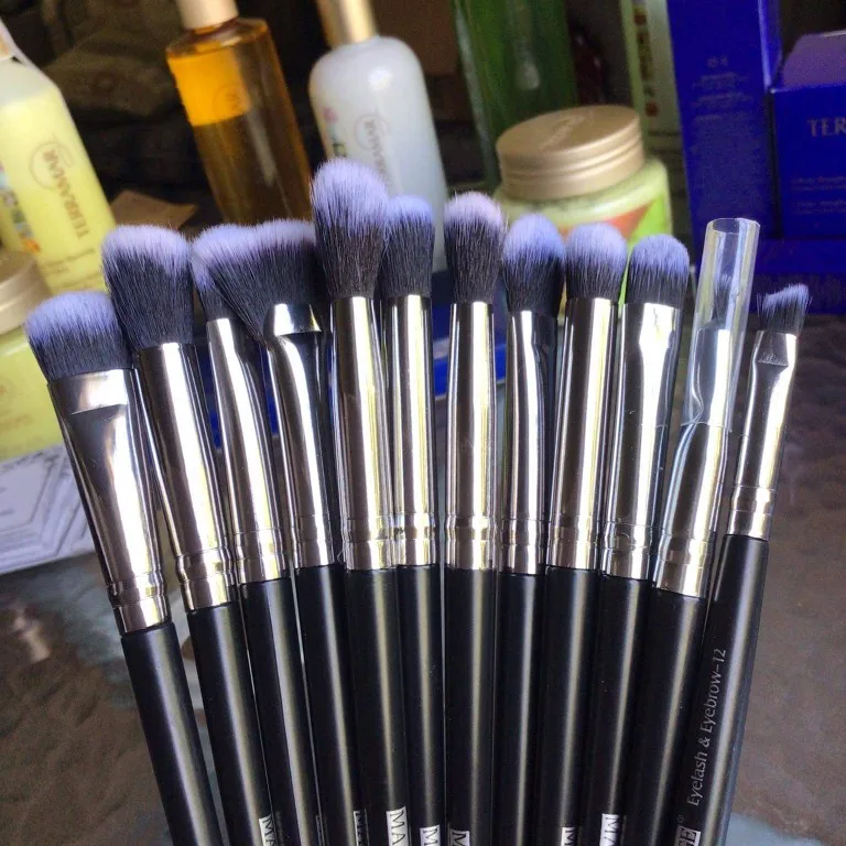 Набор кистей для макияжа, профессиональный набор кистей для растушевки и нанесения теней, подводки, туши, прорисовки бровей, 12 шт.лот