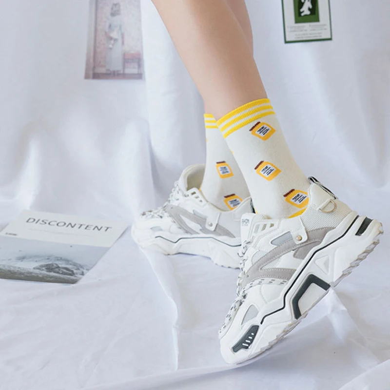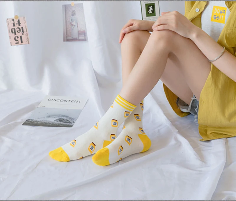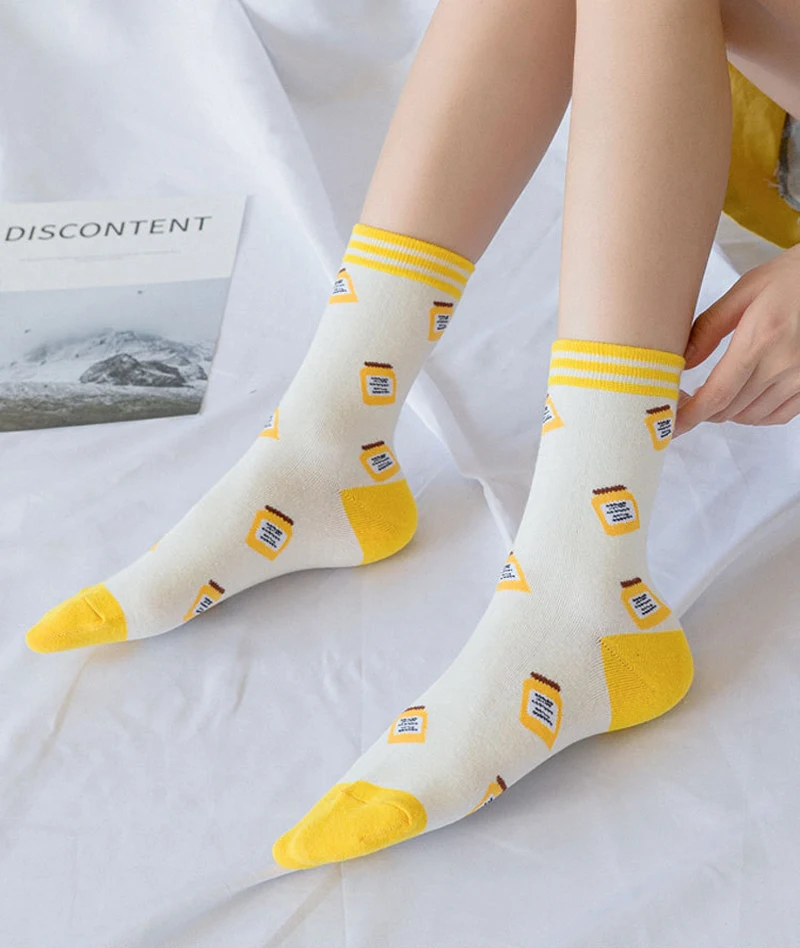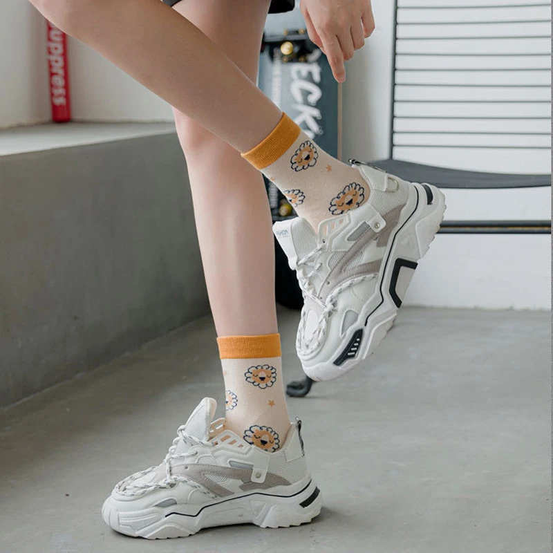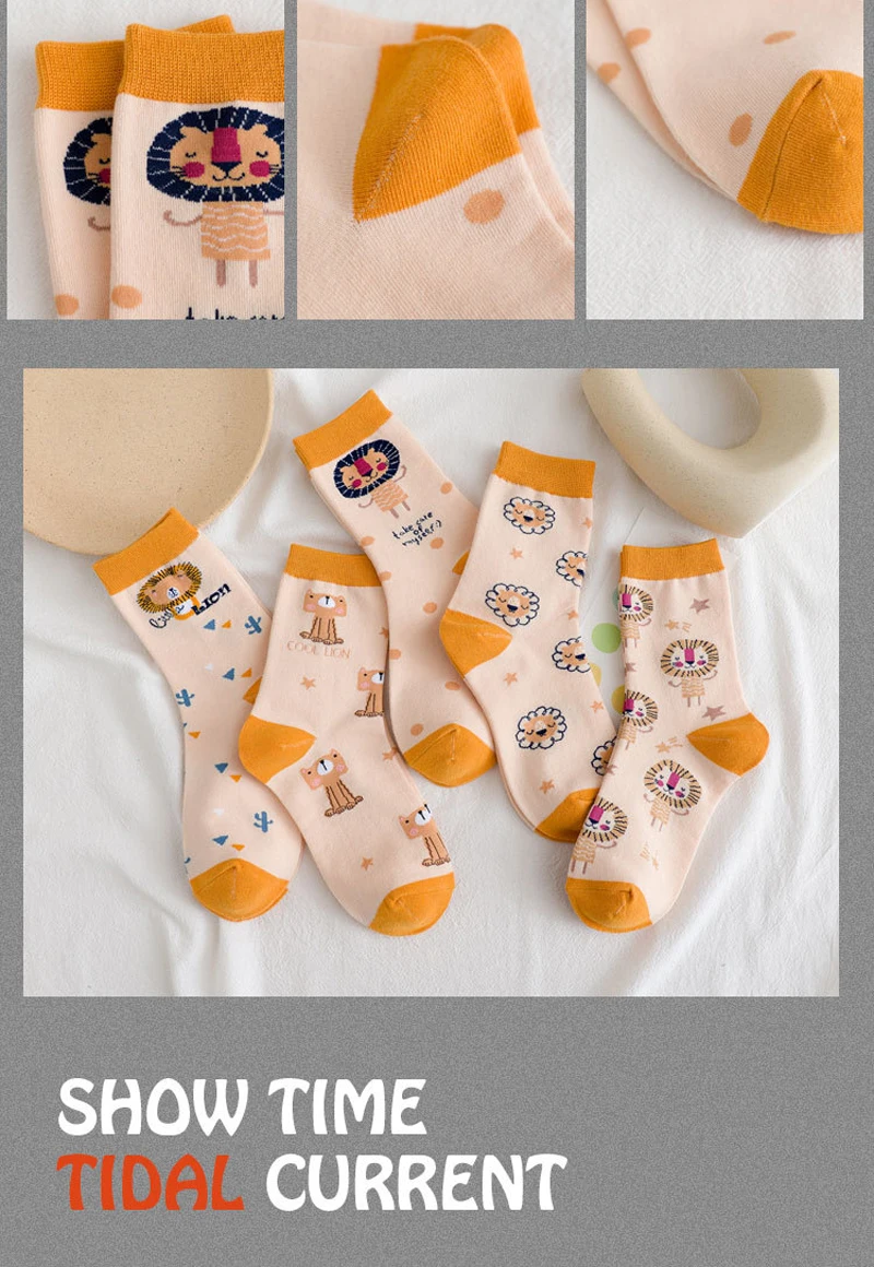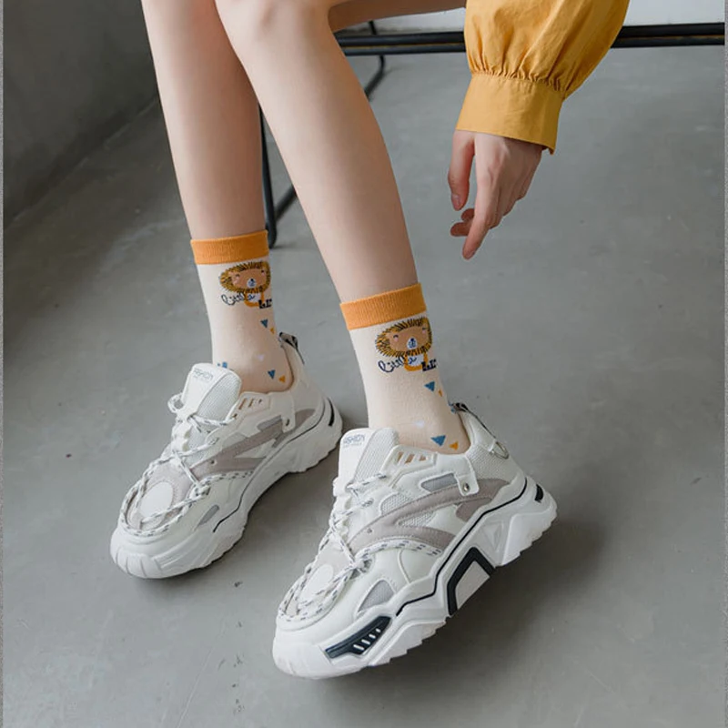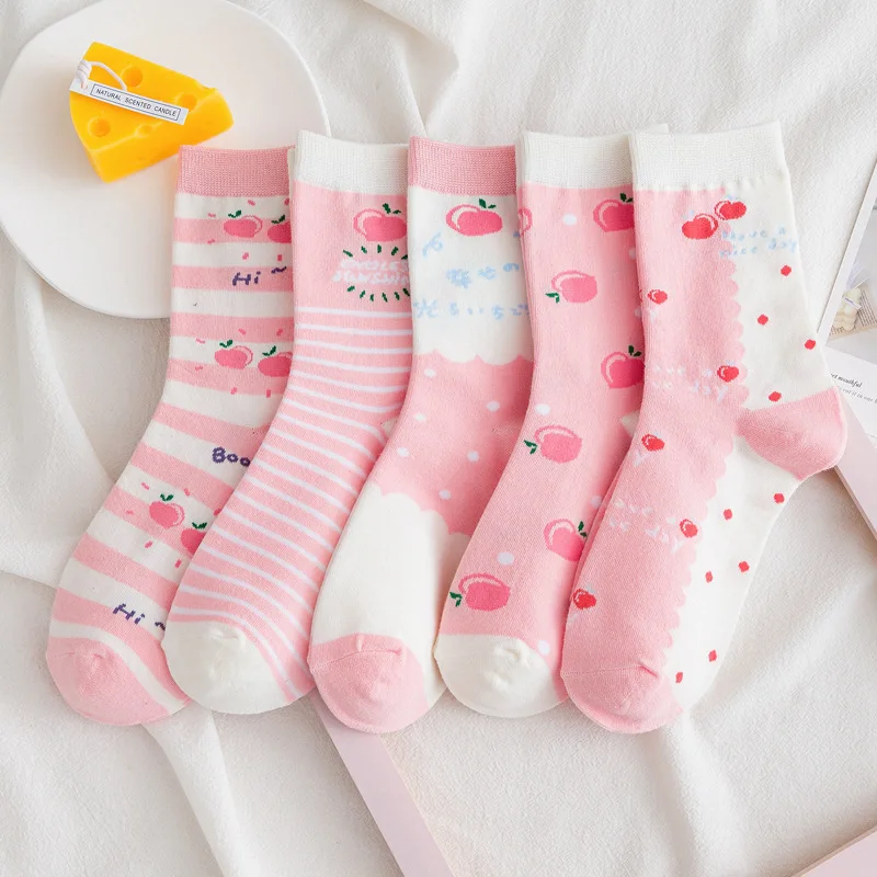 Носки женские, хлопковые, полосатые, с принтом медведей, кроликов, 5 пар