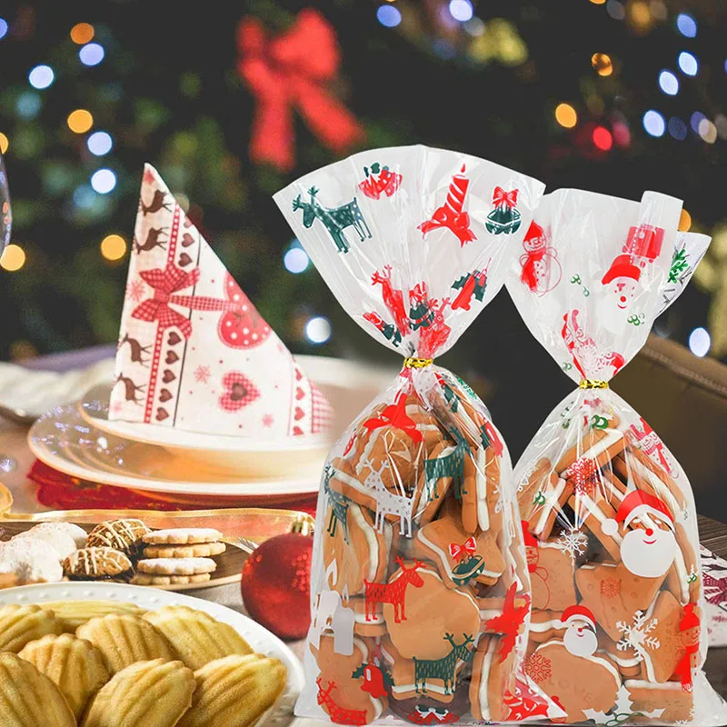 Пластиковые пакеты для рождественского печенья, с принтом рождестве...