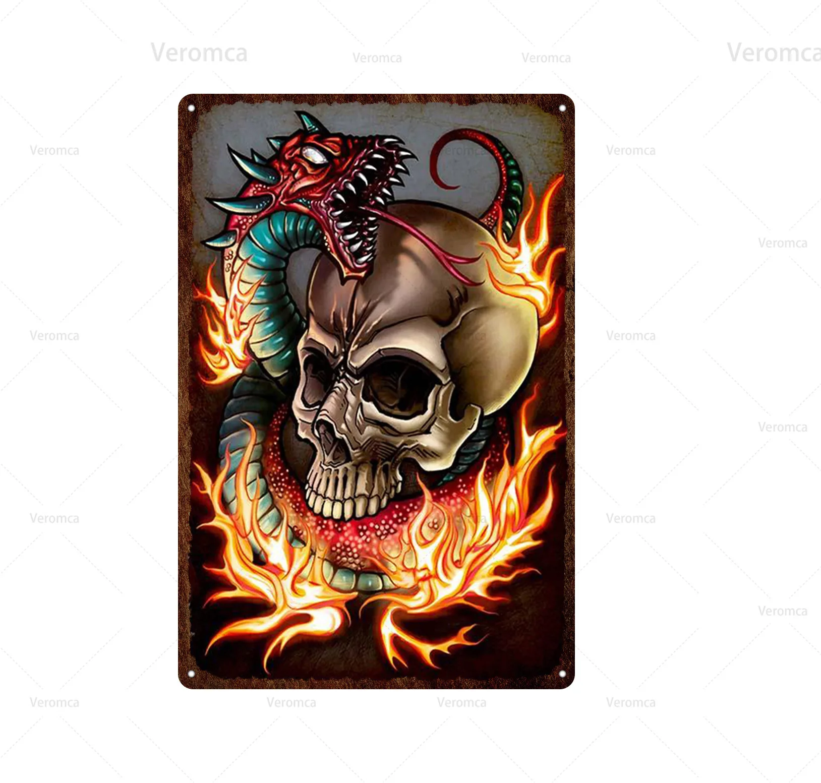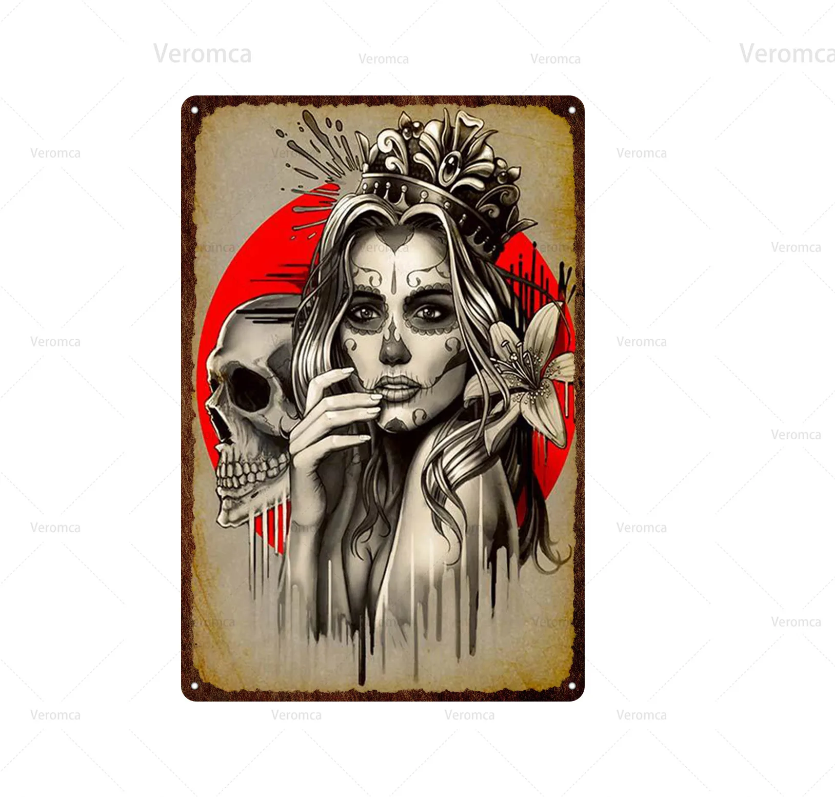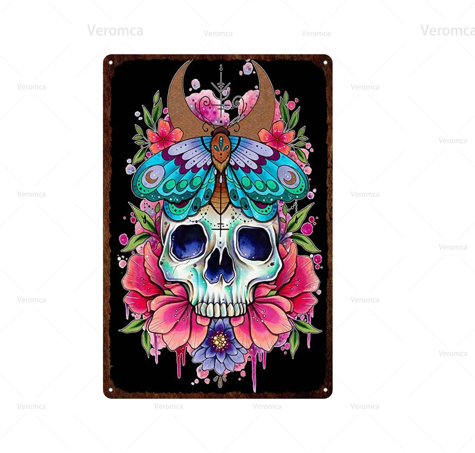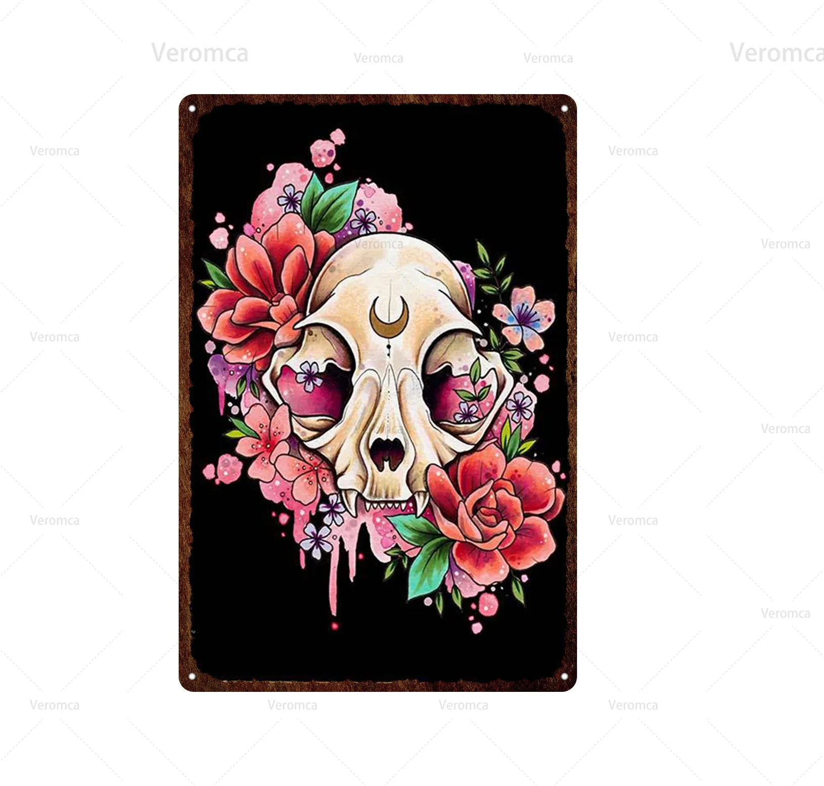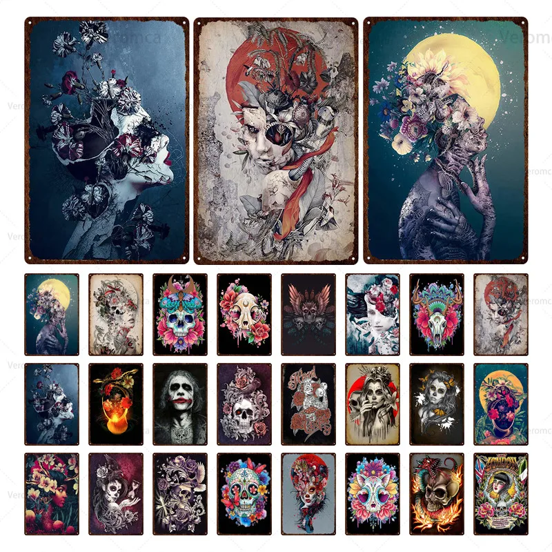 Красота, Череп, цветы, искусство, металлический жестяной знак, потертый налет, тату-магазин, Декоративная Настенная картина, железная пластина