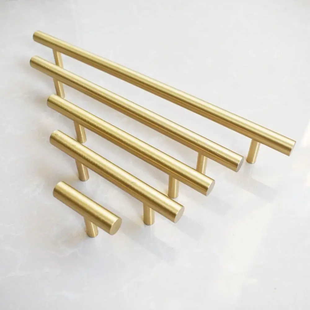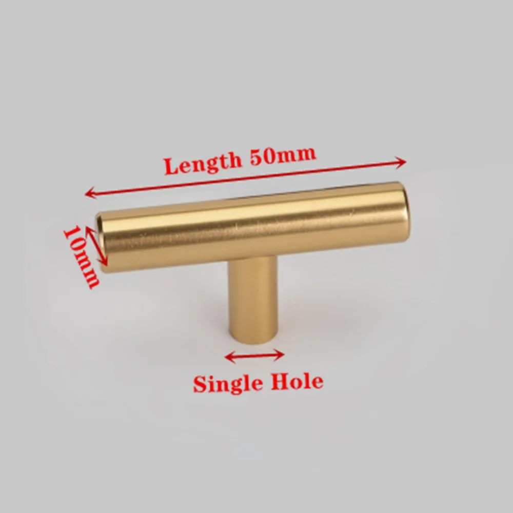 Золотые Т-образные ручки для кухонной двери, прямые ручки для шкафа, диаметр 10 мм, ручки из нержавеющей стали для мебели, деревообработки