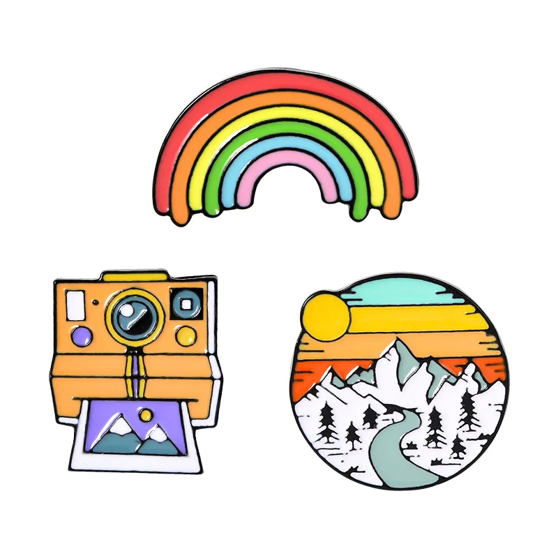 Мультяшная брошь, креативная Радужная брошь, эмалированная брошь для камеры, брошь в виде пейзажа, булавка на лацкан, значок для подарка, путешествия, памятный