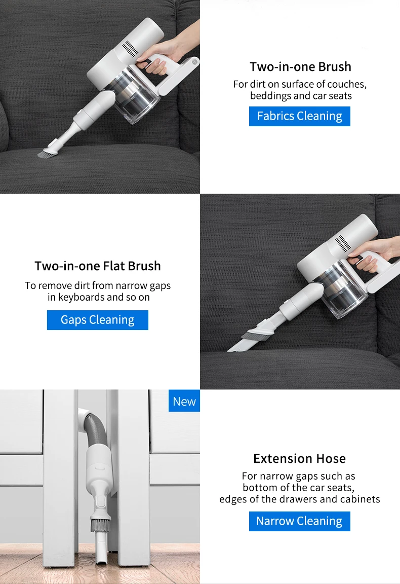 Помимо уборки полов, щелей дивана, устранения клещей, пылесос Dreame V10 имеет новый Удлинительный шланг, который может очистить узкие, изогнутые участки.