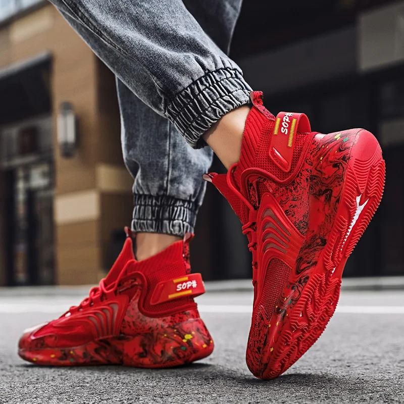 Sxclaee модные летающие вязаные высокие мужские повседневные туфли ...