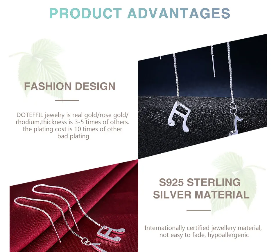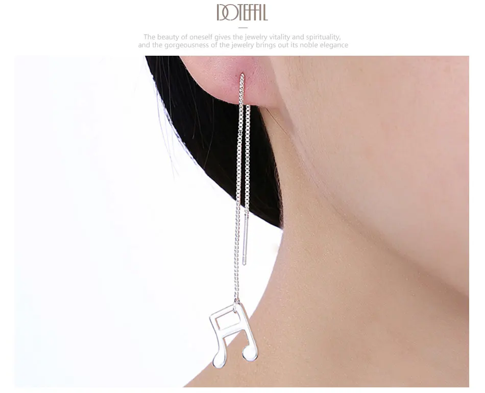 DOTEFFIL 925 Sterling Silver Musical Note Ear Wire Drop Earrings Charm Women Jewelry Fashion Wedding Engagement Party Gift