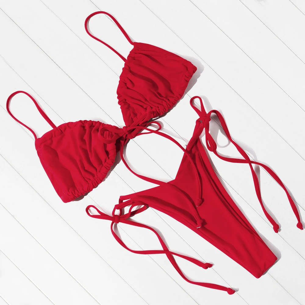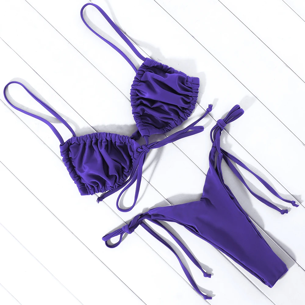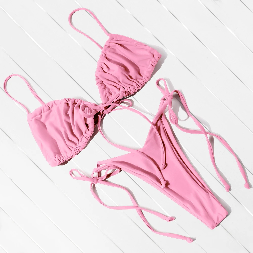 Бикини мини с высоким вырезом, Женский треугольный раздельный купальник, женские плиссированные бразильские стринги, пляжная одежда, микро бикини, сексуальное, 2020