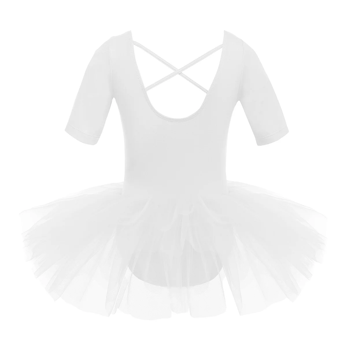Детское балетное трико для девочек, балетное трико с коротким рукавом, балерина из сетчатой ткани, балетная танцевальная одежда, трико, платье для танцевальных занятий