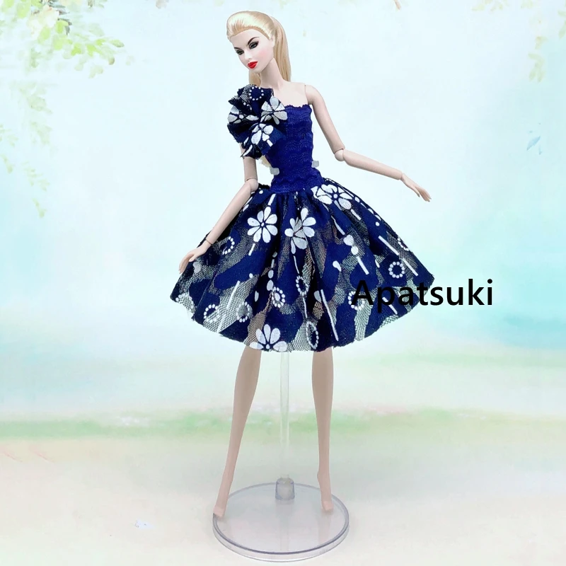 Синее Цветочное платье-пачка, модная одежда для куклы Барби, наряды для кукол, вечернее платье, аксессуары для кукол, игрушки для детей, 16